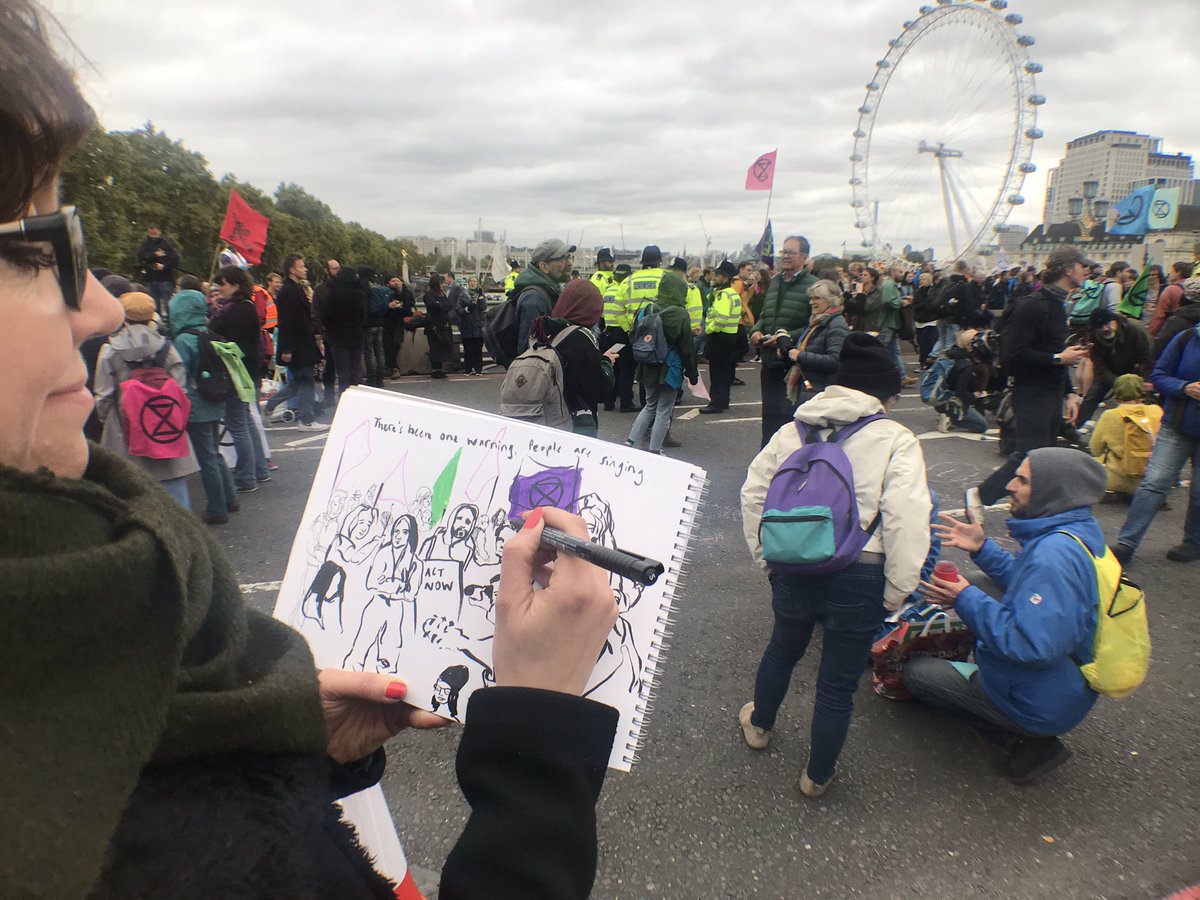 #ExtinctionRebellion, like many,@WallisEates is sketching on#WestminsterBridge and in#TrafalgarSquare.
