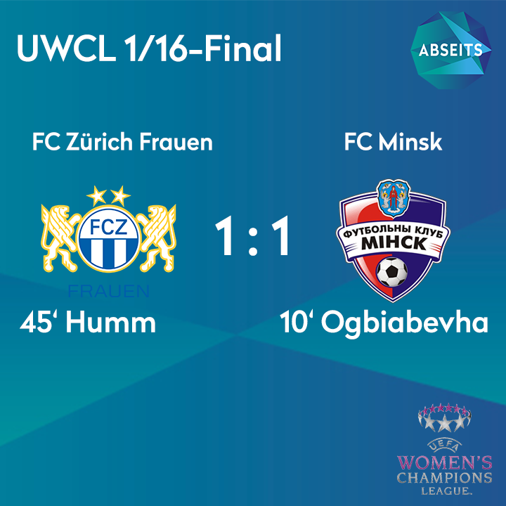 45' Crucial equaliser just before the break for Zurich, scored by their captain Fabienne Humm - 2 more goals to go for FCZ.