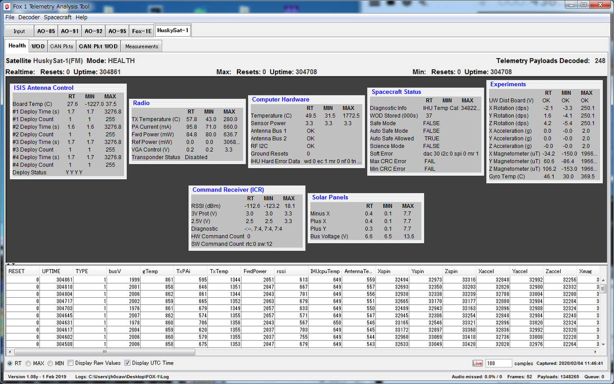 HuskySat-1 11:37 UTC 1K2 telemetry over Japan