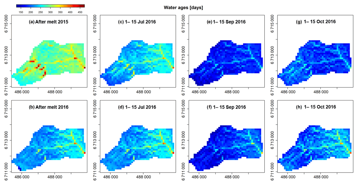 In a permafrost-influenced catchment, is the runoff generation during spring freshet dominated by 'old' water or 'event' water? Here's our results, obtained by the integration of