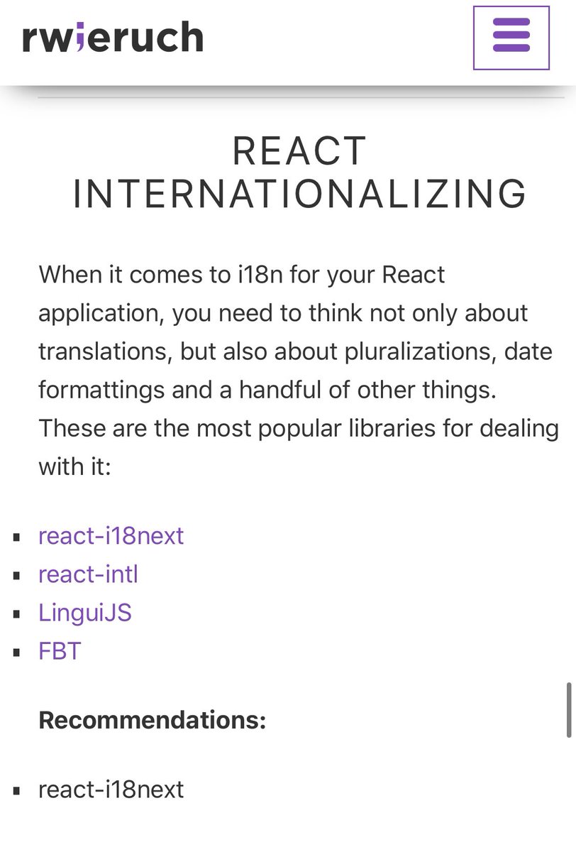 #react-i18next is reconmended: https://www.robinwieruch.de/react-libraries#react-internationalizing …#i18n#javascript#npm#webpic.twitter.com/gsPRtntQ7C