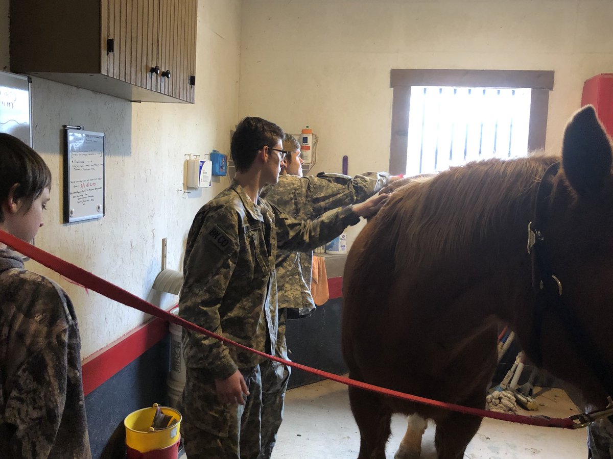 Our very own Sgt. Mgr. Tigs (Cumberland High School) shows his students that leadership and hard work can be demonstrated in various ways. Every task is important and supports the mission. Thank you Lonesome Dove Equestrian Center for this hands-on learning opportunity.