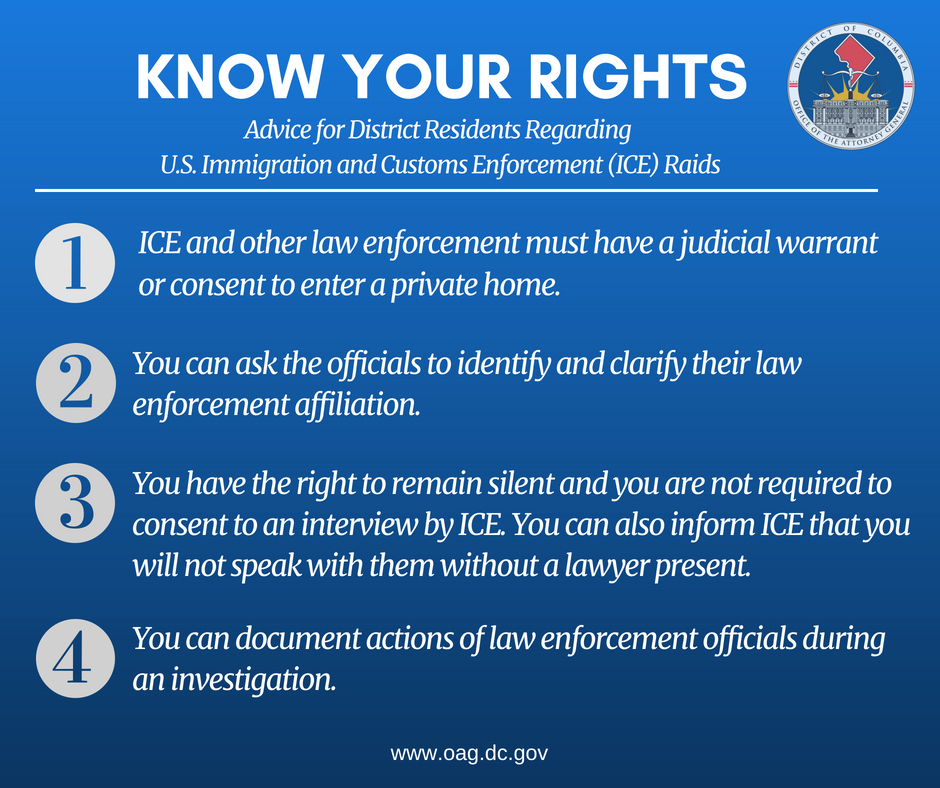 Reports of indiscriminate ICE raids targeting District residents based on their appearance are deeply troubling. DC values all of its residents and we will work to ensure they are protected. Know your rights if