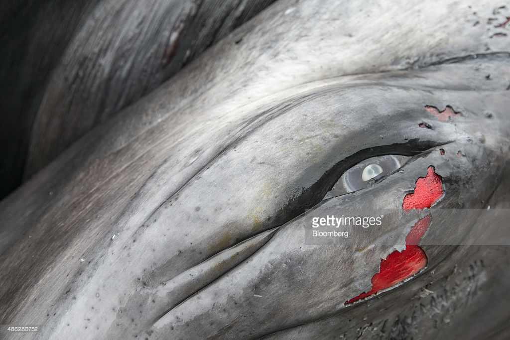 A harpoon removed from his body His eye still shows the depth of intelligence