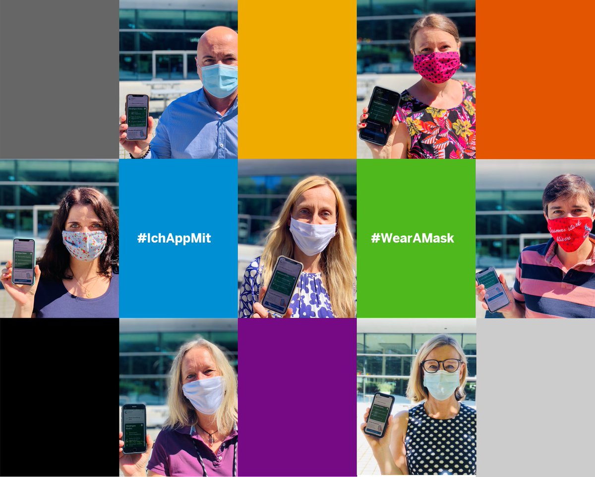 #WeWearMask &#socialdistance also in the office because we care for each other. As we all use the@coronawarnapp, we were inspired to take pictures