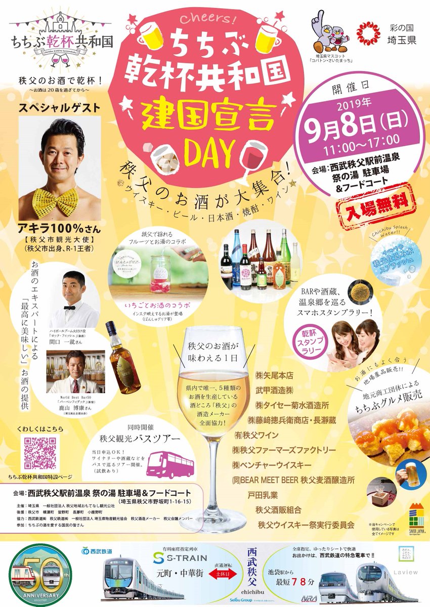 ちちぶ乾杯共和国 建国宣言DAY 秩父のお酒が大集合 9月8日(日)11:00~17:00