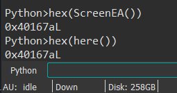 Still using 'ScreenEA()' in your idapy like some neanderthal out of the 90s? Try using 'here()' instead! - Use here() instead of ScreenEA() - You can now write idapy at least twice as fast, and you didn't even have to install gentoo!