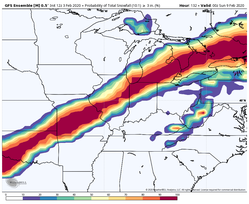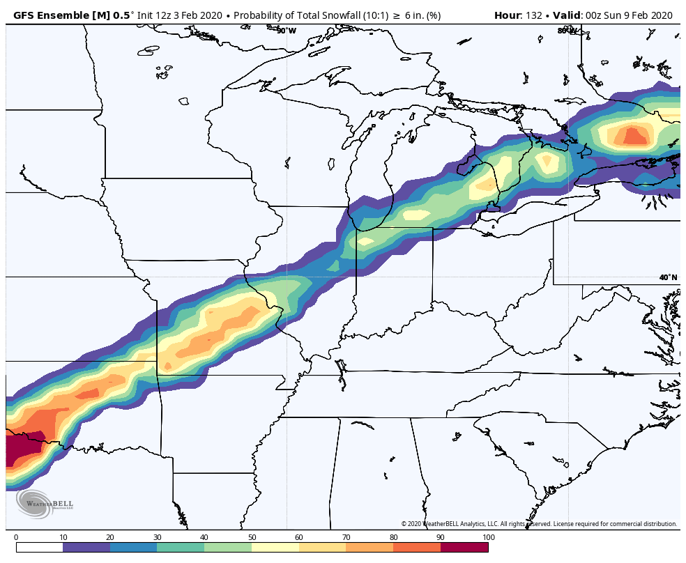 Here's a map illustrating the zone where I think the best odds are of a couple to several inches of snow from this storm. Areas southeast of the pink may have to deal with mixing issues. I'll tweak this map as we get closer.
