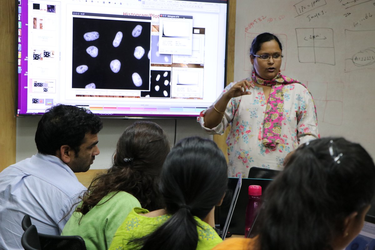 #ImageAnalysis course! CCAMP faculty Dr Lakshmi Balasubramanian throws light on nitty-gritty of#imageprocessing-- Intensity measurements, image segmentation & correction, 3D quantitative image analysis-- all big mainstays of microscopic imaging technique pic.twitter.com/7lkh6dNhXL
