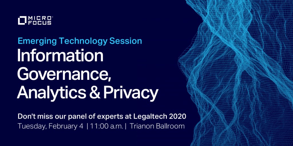 #MicroFocus & our panel of experts in our@LegalTechShow session on today at 11AM to learn how#InfoGov can be leveraged to derive greater business value from predictive analytics. http://ms.spr.ly/6018TZwuo#LegalWeek20#SecurityandRiskpic.twitter.com/USTSbgeKTG