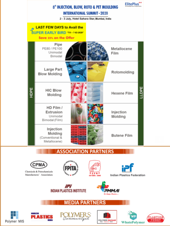 Last Few Days Left! Super Early Bird - The 8th Injection, Blow, Roto & PET Moulding International Summit 2020, 2-3 July, Mumbai, India