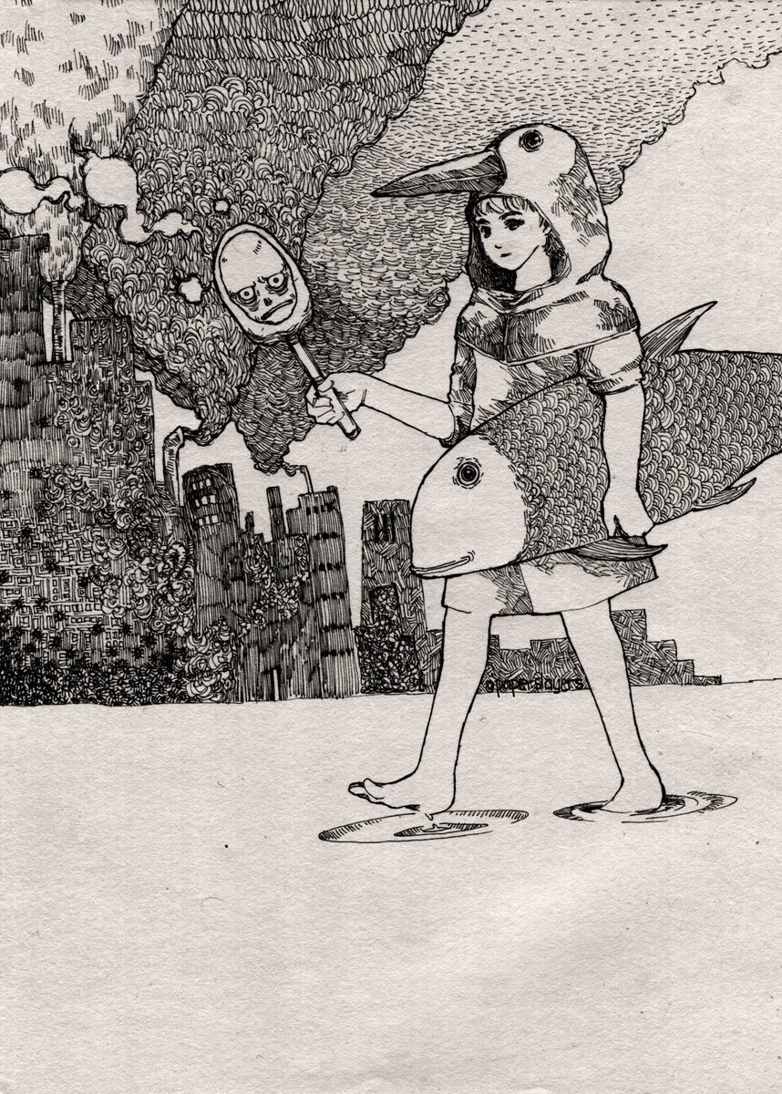 #boy is helping his#fish friend go back to the sea. Their guide is a#skeleton, who grumbled every step.#original#oc#ink#micron#whimsical#weird#art#portrait#anime#manga Today is my 1st year twitterversary :D! Thank you to all friends who I’ve met in these 12 mths!pic.twitter.com/vwyFoD9e7W