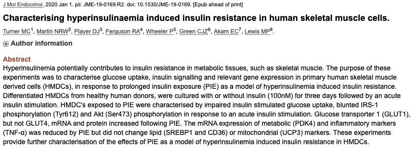 #insulin alone is enough to drive#insulinresistance in#muscle cells. One conclusion (for me): keep insulin low by limiting processed carbs. https://bit.ly/2O9V0J8 pic.twitter.com/94LPcBB3UT