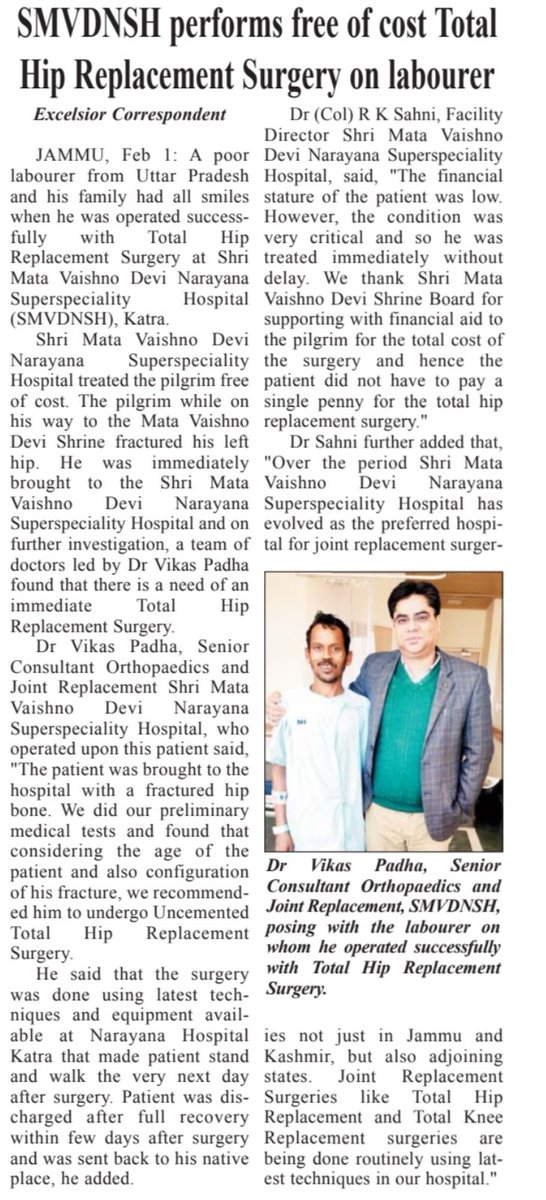 #will , there is a#way! If there is genuine#intention to help & treat#poor patients while working in corporate hospitals,it is quite possible. "Feel for the miserable & look for the help,it shall come"said Swami Vivekananda. Thus proved. https://www.dailyexcelsior.com/smvdnsh-performs-free-of-cost-total-hip-replacement-surgery-on-labourer …pic.twitter.com/0sHOwMbAAB