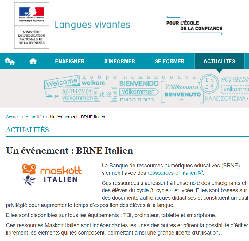 Retrouvez la #BRNEDU#Maskott#italien pour les cycles 3, cycle 4 et le lycée, et profitez des nombreux#contenus#authentiques et#interactifs (BD, objets 3D...) pour#enseigner l'italien