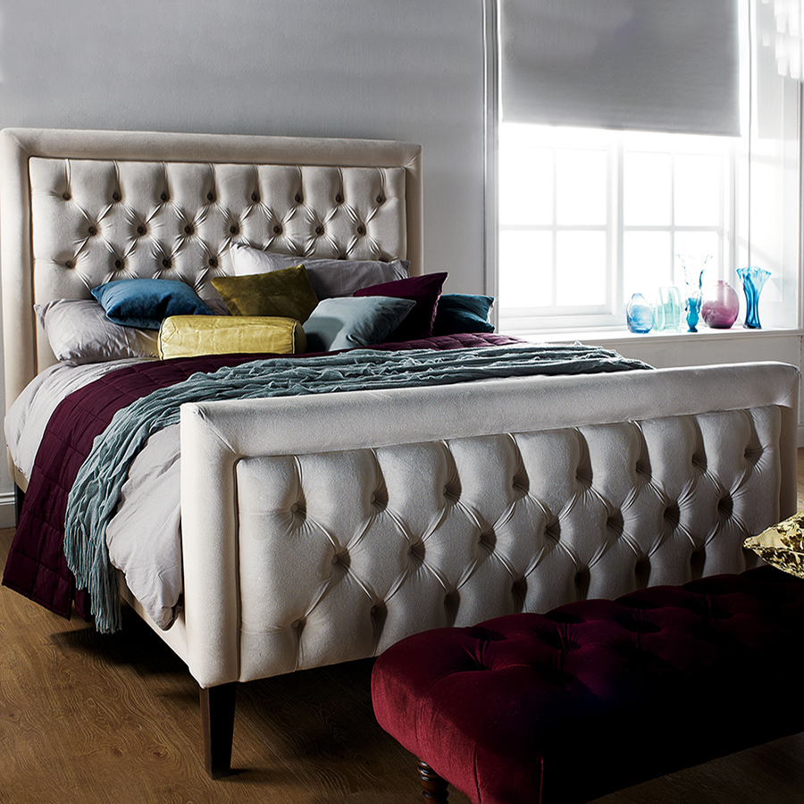 Vogue Hugo Mystic Ivory Velvet Deep Buttoned Double Bed