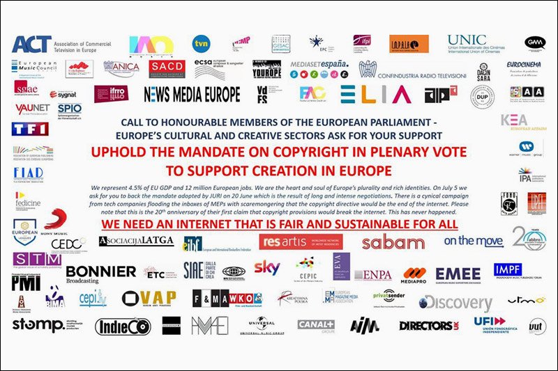 @WADWorldwide) shares the following@saabrussels call for an#internet that is fair and sustainable for all. Uphold the mandate on copyright in the@Europarl_EN plenary vote to support creation in Europe. http://www.writersanddirectorsworldwide.org/call-to-honourable-members-of-the-european-parliament-europes-cultural-and-creative-sector-ask-for-your-support/ …pic.twitter.com/piPxHTCv7U