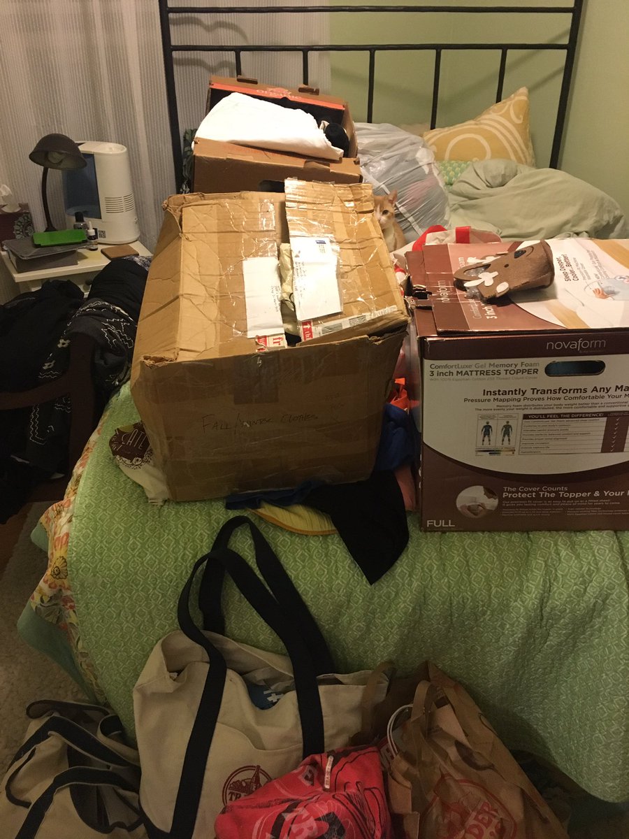 Currently: have pulled everything out of closet to pack. Now must rest.