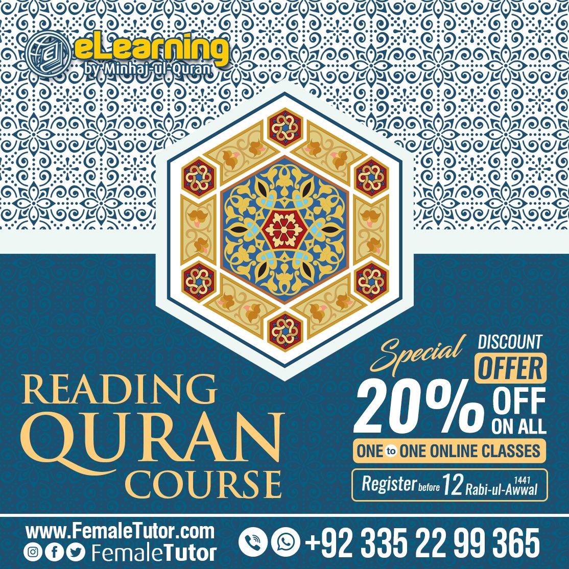 Reading Quran Course Get 20% Off on all one to one online classes Valid till 12 Rabi-ul-Awwal 1441 eLearning by
