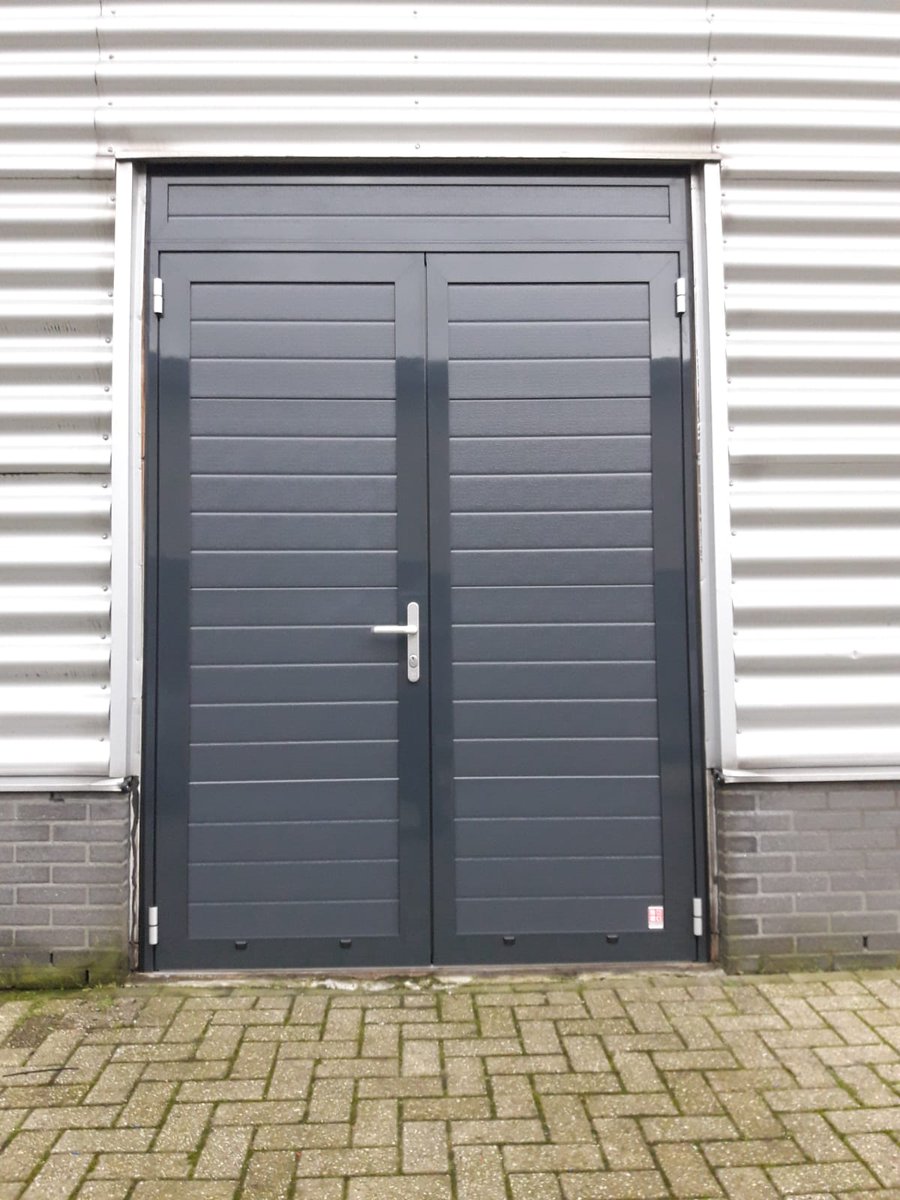 Dubbele openslaande deuren met een vast bovenlicht.