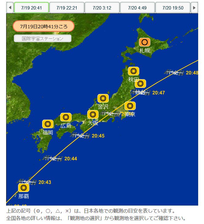 #ISS#国際宇宙ステーションの通過 は晴れていれば日本全国で見られる良パスですよ。お忘れなく!。「きぼう」を見よう#JAXApic.twitter.com/MYAprT2ThO