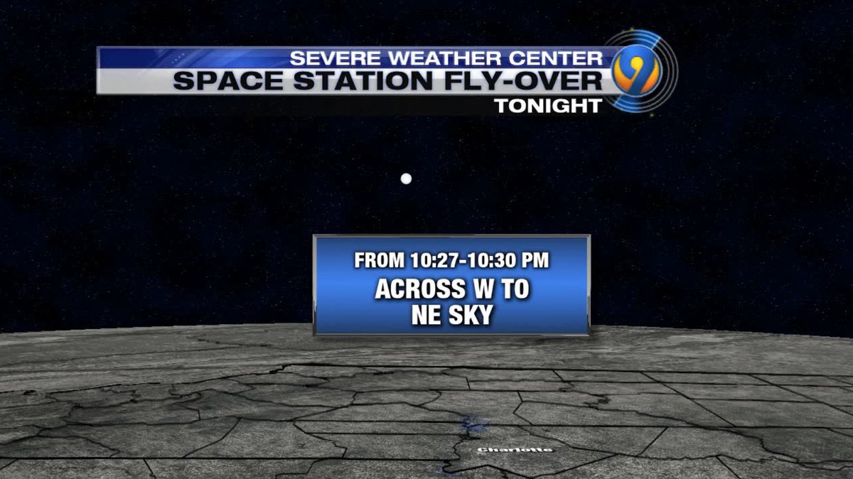 #ISS will pass directly overhead! Look low in the west sky and directly overhead as it passes through north then NE before disappearing#cltwxpic.twitter.com/RSdekbRz8D