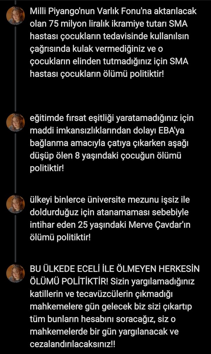 another woman murdered in Turkey. don’t know what to say. don’t know who will murder me just because I’m a woman. don’t know how to stay alive under this circumstances.