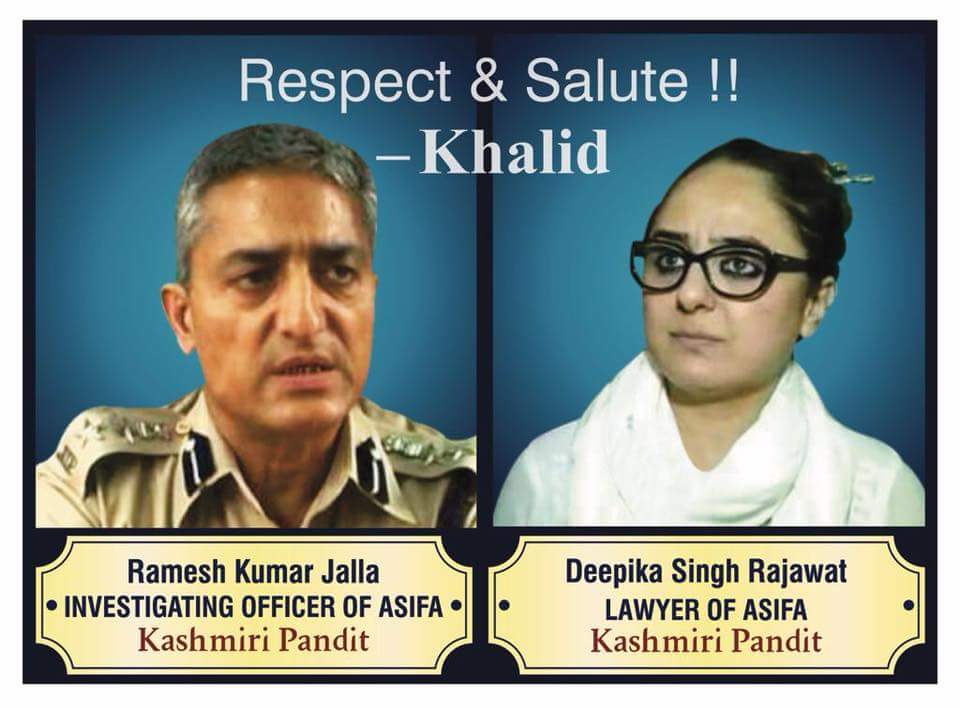 #Jalla (Investigating Officer)&#Rajawat (Lawyer) stood against this monstrous act & fought for the#JusticeforAsifa I Salute these true Indians on behalf of the entire Nation Victims have no Religion.pic.twitter.com/RLKOITT0yO