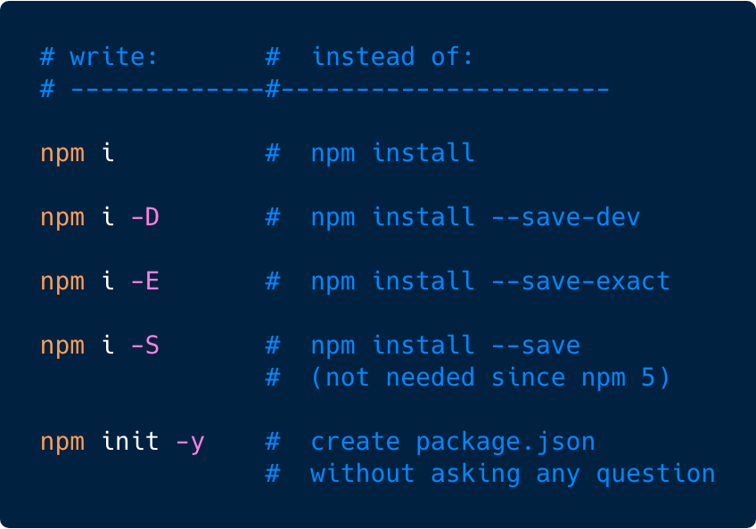 #JavaScript tip for today: Dealing with npm a lot? Here are some useful shortcuts that will help saving those precious keystrokes