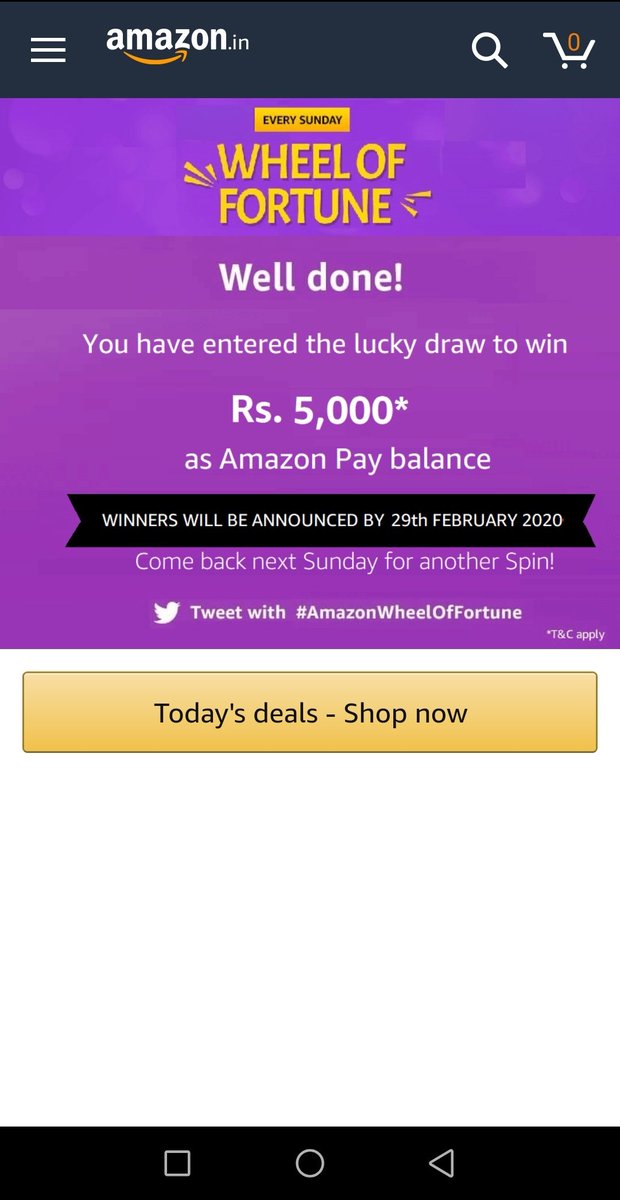#AmazonWheelOfFortune 5000 cash back Make me WIN#Amazonin#JeffBezos pic.twitter.com/R9RvXVhKZu