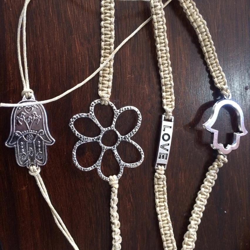 In the making..... Handcrafted macrame adjustable bracelets, pewter with natural waxed cotton.Contact me