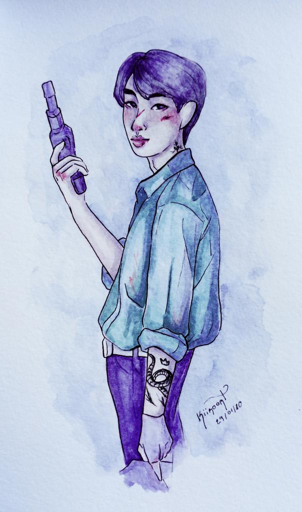 @frayheartV Esta colaboración trató de que cada una elegiria lo que dibujaria la otra. En Mi caso#Jin Malote Y gamas de colores fríos. Estoy ansiosa por saber que dibujo ella con mis especificaciones.#Collab#drawing#art#watercolor#Jin#JinFanArt pic.twitter.com/HjUKqolrYZ