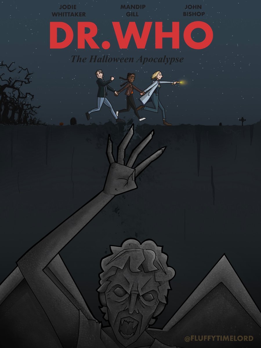 #TheHalloweenApocalypse#DoctorWho#Flux#JodieWhittaker#MandipGill#JohnBishop#Art#WeepingAngels#Jaws#Poster@bbcdoctorwhopic.twitter.com/ovJKQjnQQs