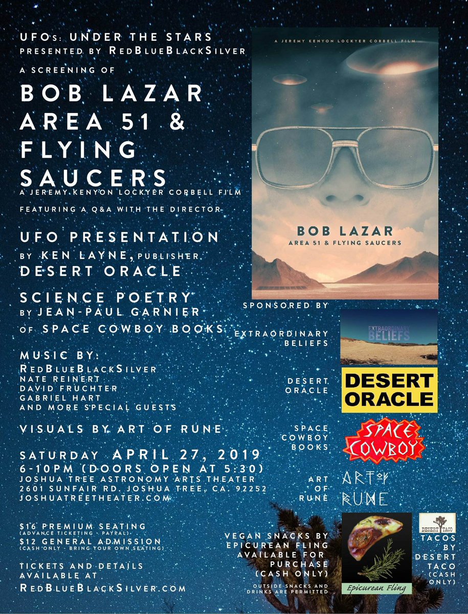 @RedBluBlkSilver and@Desert_Oracle + food, music and UFO sermons!!!#BobLazar#Area51#JoshuaTree pic.twitter.com/Xa1LhgNwin