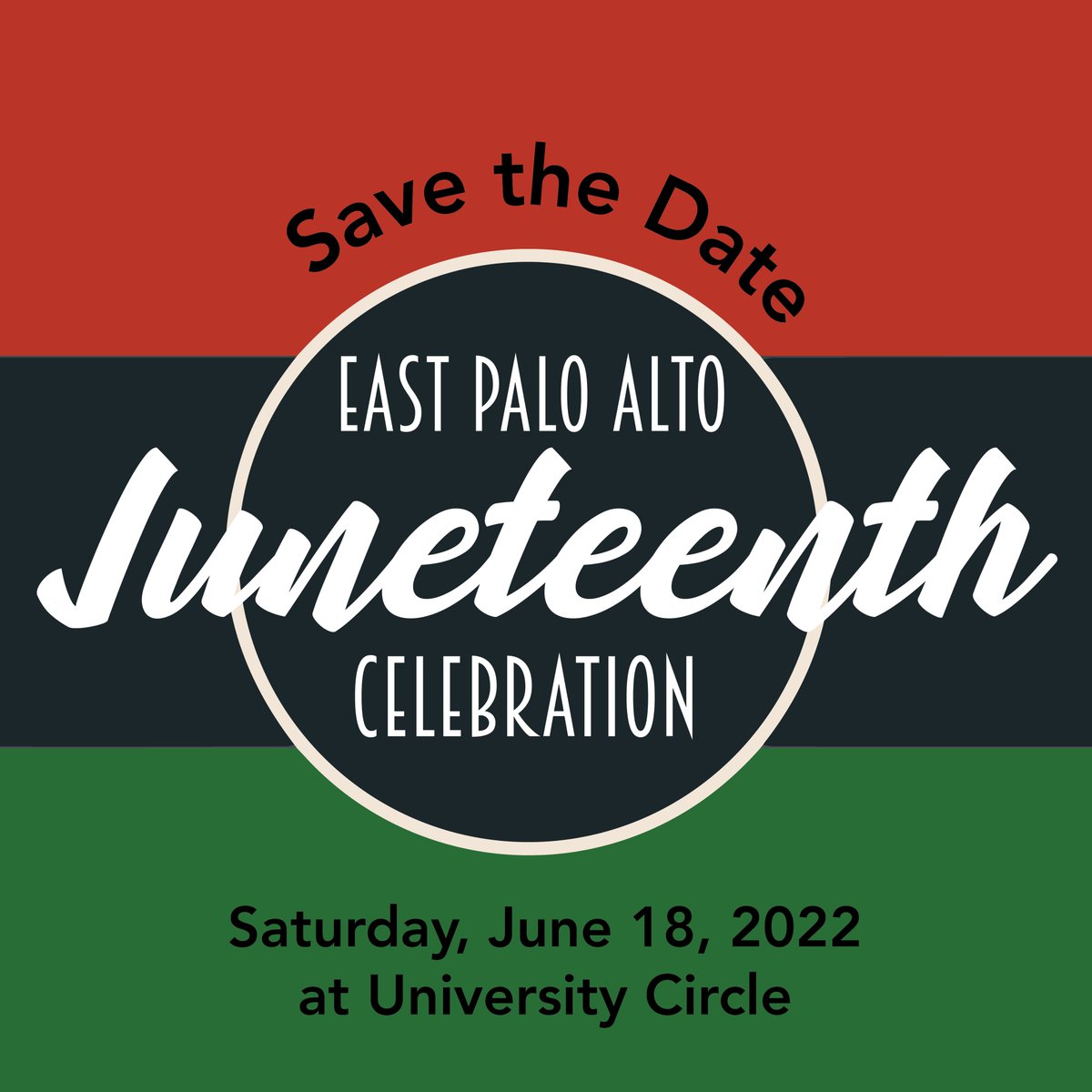 Juneteenth will be here before we know it! Save the Date for this year's celebration in East Palo Alto – Saturday, June 18 at University Circle! Hope to see you there!