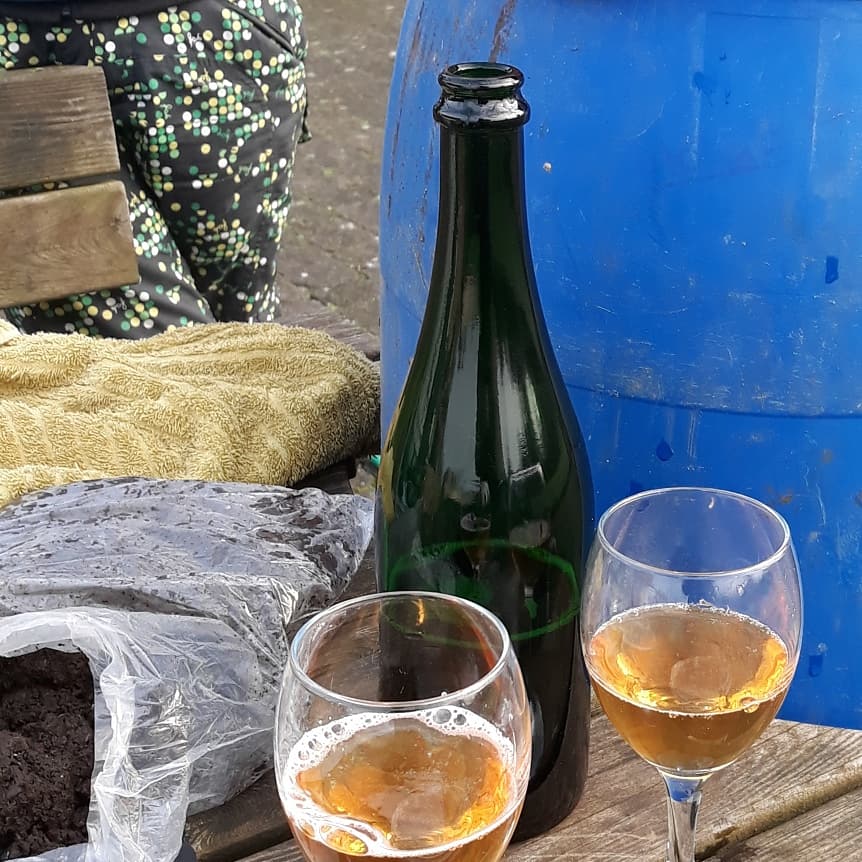 #biodynamic#wassail with my neighbour John, Shalvanstown#organic farm and Jeni@GLASGOW_DIAZ adding fresh#cider to the mix (and ourselves) for orchard application today.#keevingitreal pic.twitter.com/q9hjFdr9Qn
