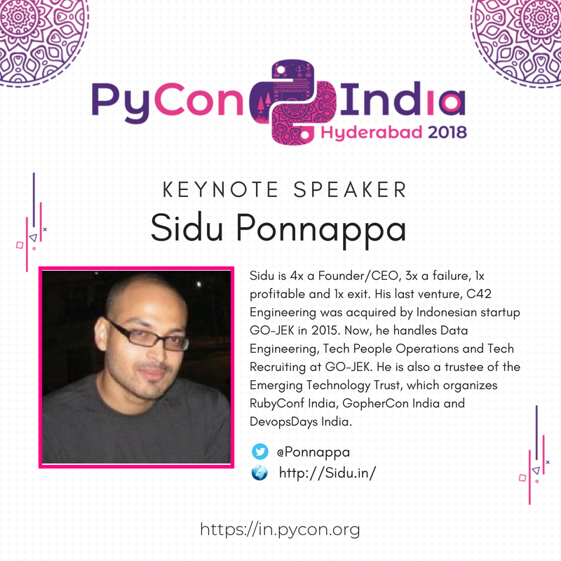 #PyConIndia2018@ponnappa :) Want to catch him in person then do buy your ticket for#PyConIndia today. https://buff.ly/2Ju01a3#Keynote#Speaker#Python#Conferencepic.twitter.com/i6r1AEoktw