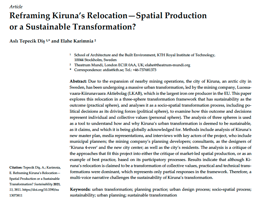 Absolutely delighted-our paper on "reframing Kiruna's relocation" is just off the press. visited