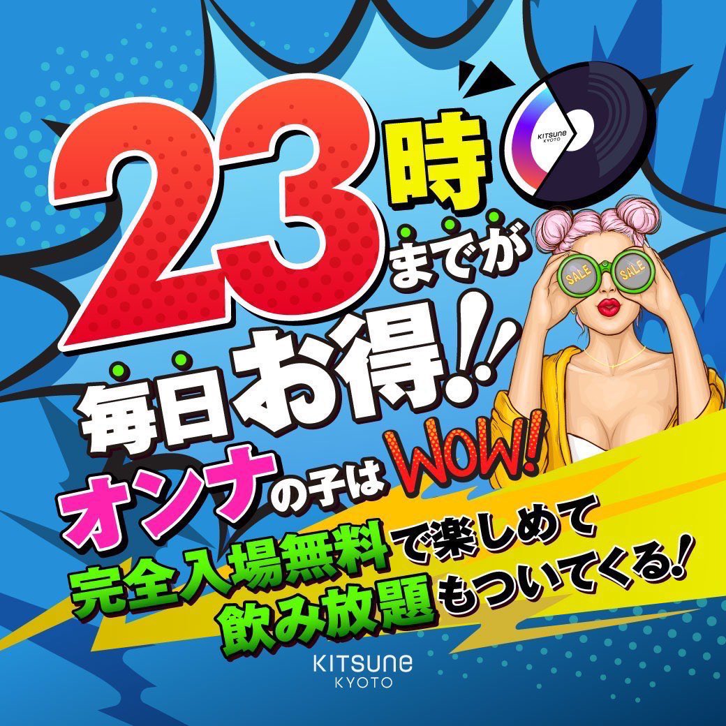 KITSUNE京都VIPはオープンしてから2時間以内の着席で超お得に遊べちゃう!平日も!週末も!早い時間帯にご来店くださいませ♪