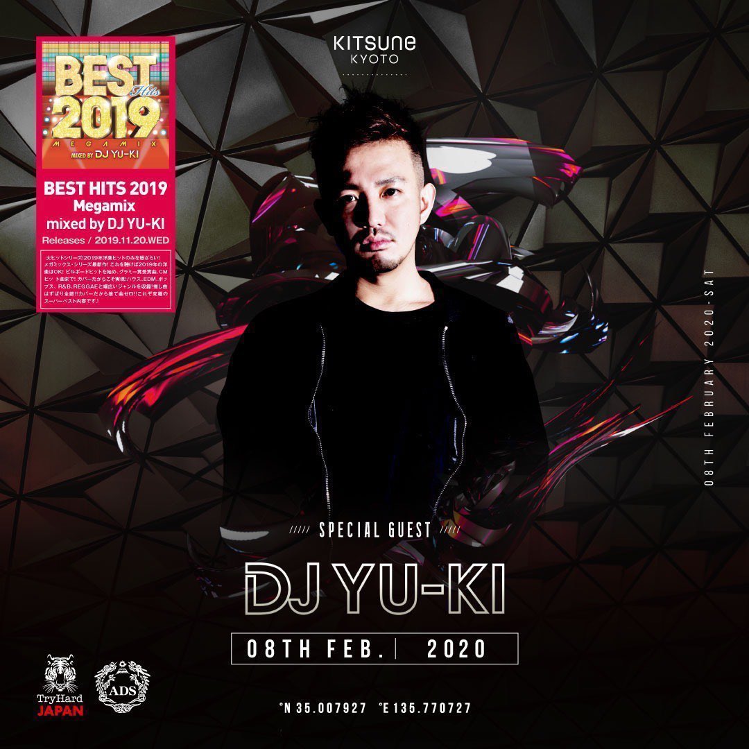 【2020.2.8(Sat) SP: DJ YU-KI】 数々のMIX CDのタイトルでiTunesダンスチャート1位を獲得!DJキャリア10年を超えるPLAYは正に「KING OF POP」DJ YU-KIがKITSUNE KYOTOに登場!
