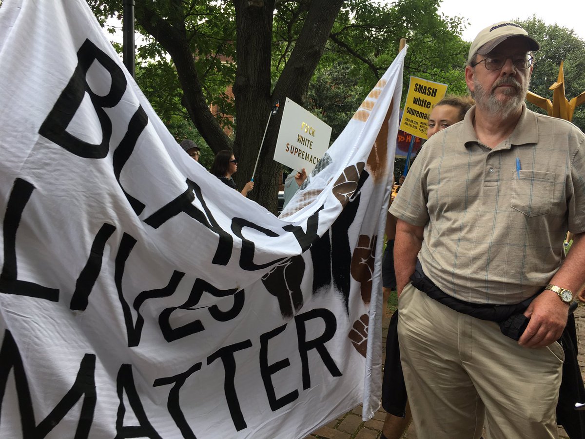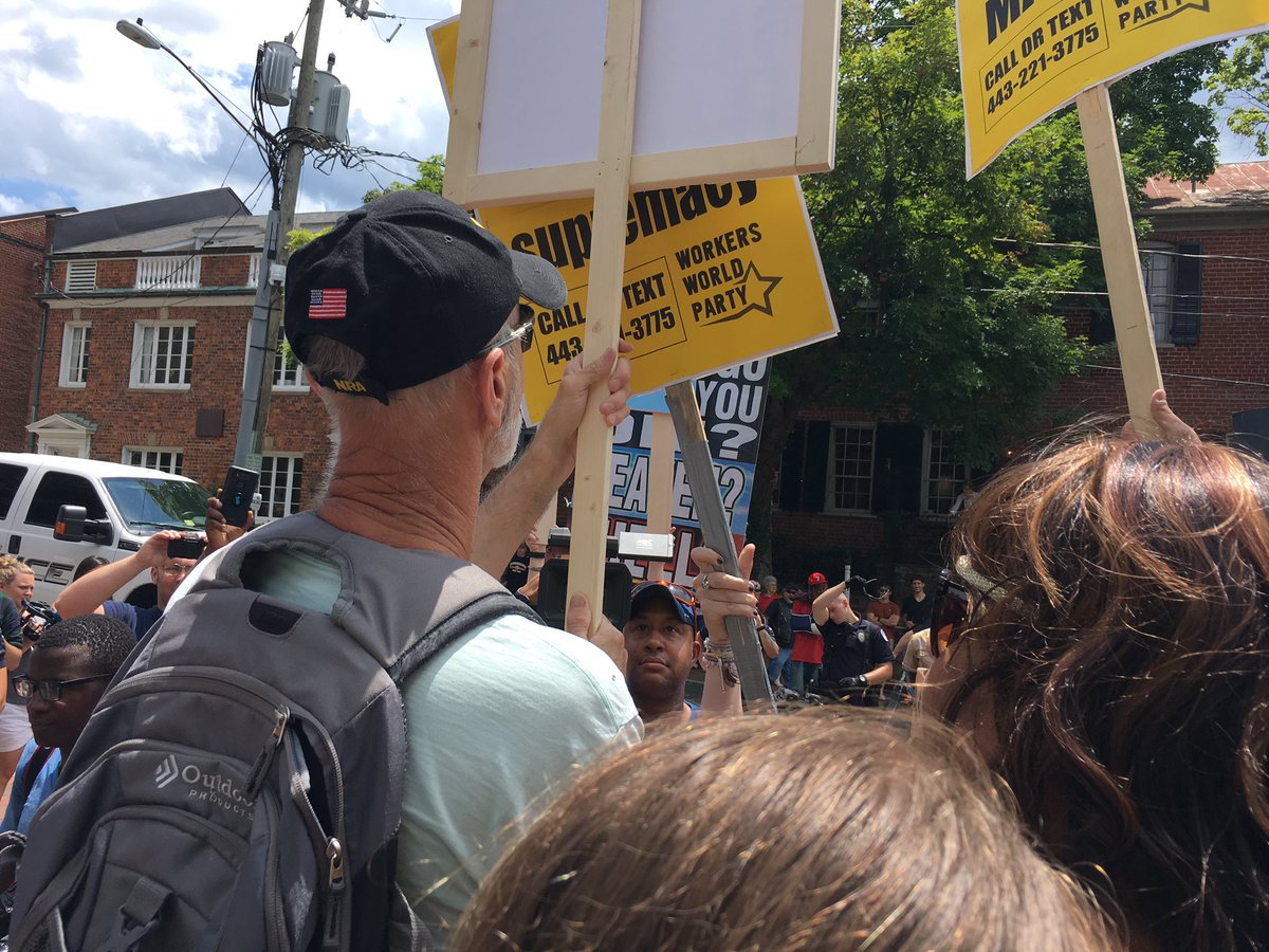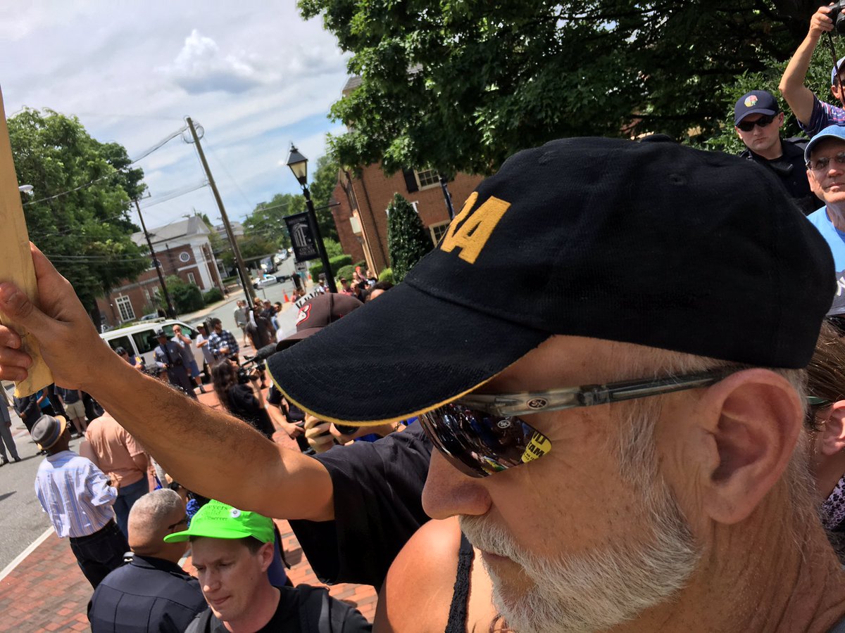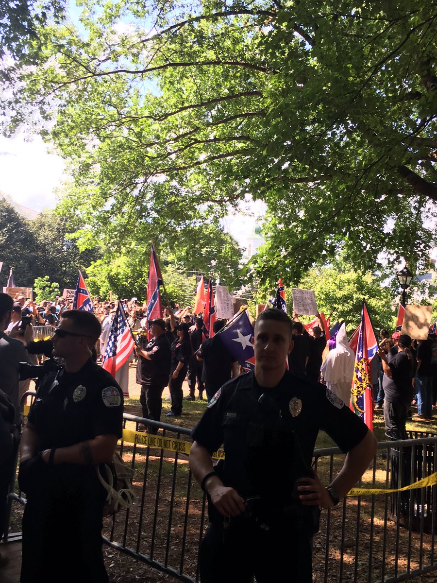 #KKK. So far no klan on the other side of fence, just stray racists.#Charlottesville#BlocKKKpic.twitter.com/eXVgTPK1rO