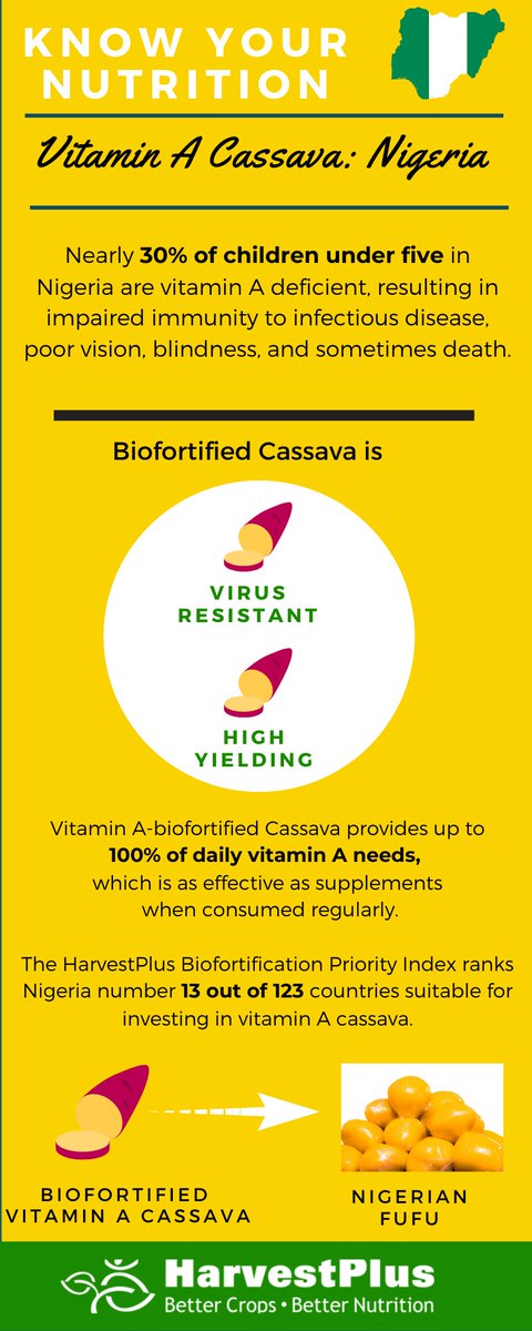 #KnowYourNutrition focuses on the impact of Vitamin A Cassava in#Nigeria, where@nutri_foodfair takes place in 20 days! More info here: http://nutritiousfoodfair.org@HarvestPlus_Ng#WellnessWednesday#WednesdayWisdompic.twitter.com/8zFP2n3OBI