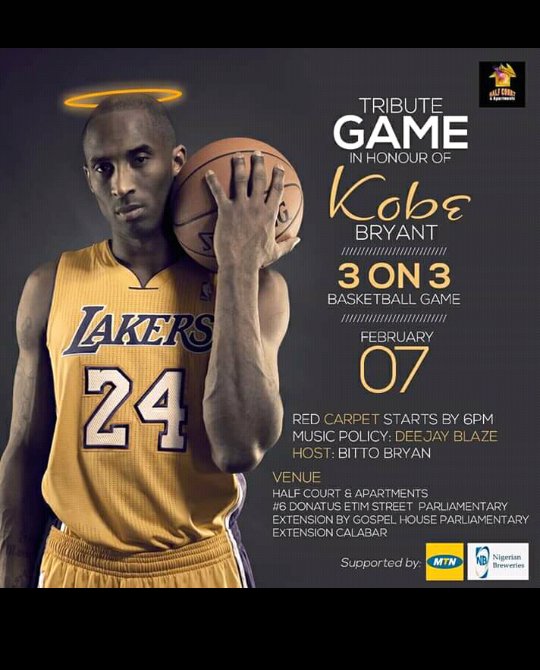 come out on Friday at Half court and Apartment, Parliamentary extension. We doing this for #KobeBraynt It's gonna be lit