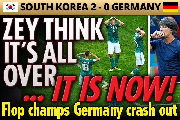 England fans RINSE Germany as giants go crashing out of World Cup to South Korea https://bit.ly/2KqFtAI