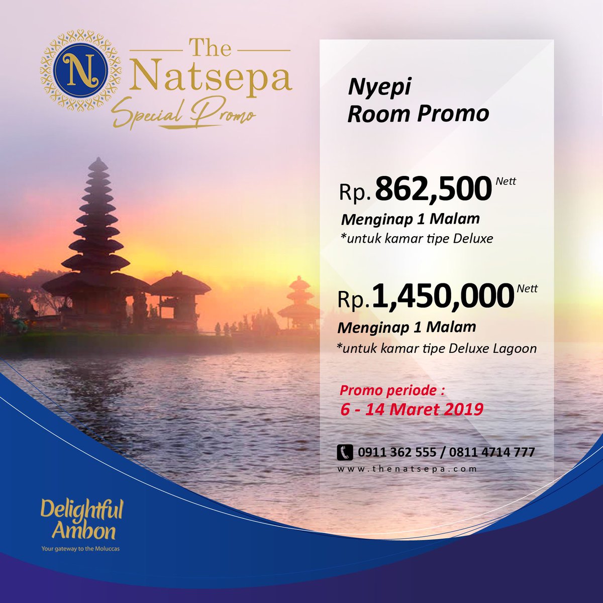 Penawaran spesial menginap di The Natsepa dalam rangka menyambut Hari Raya Nyepi 2019. Informasi / Reservasi : 0911 362 555 / 0811 4714 777. Danke & Salam Manise - The Natsepa