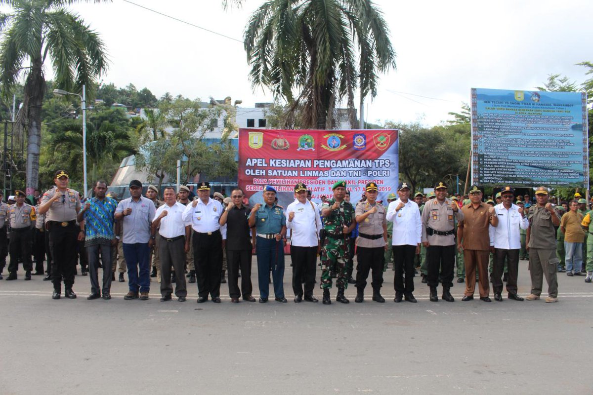 Apel Kesiapan Pengamanan TPS oleh Satuan LINMAS dan TNI - POLRI pada Pemilihan Presiden dan Wakil Presiden serta Pemilihan Legislatif tanggal 17 April 2019 Kota Jayapura..