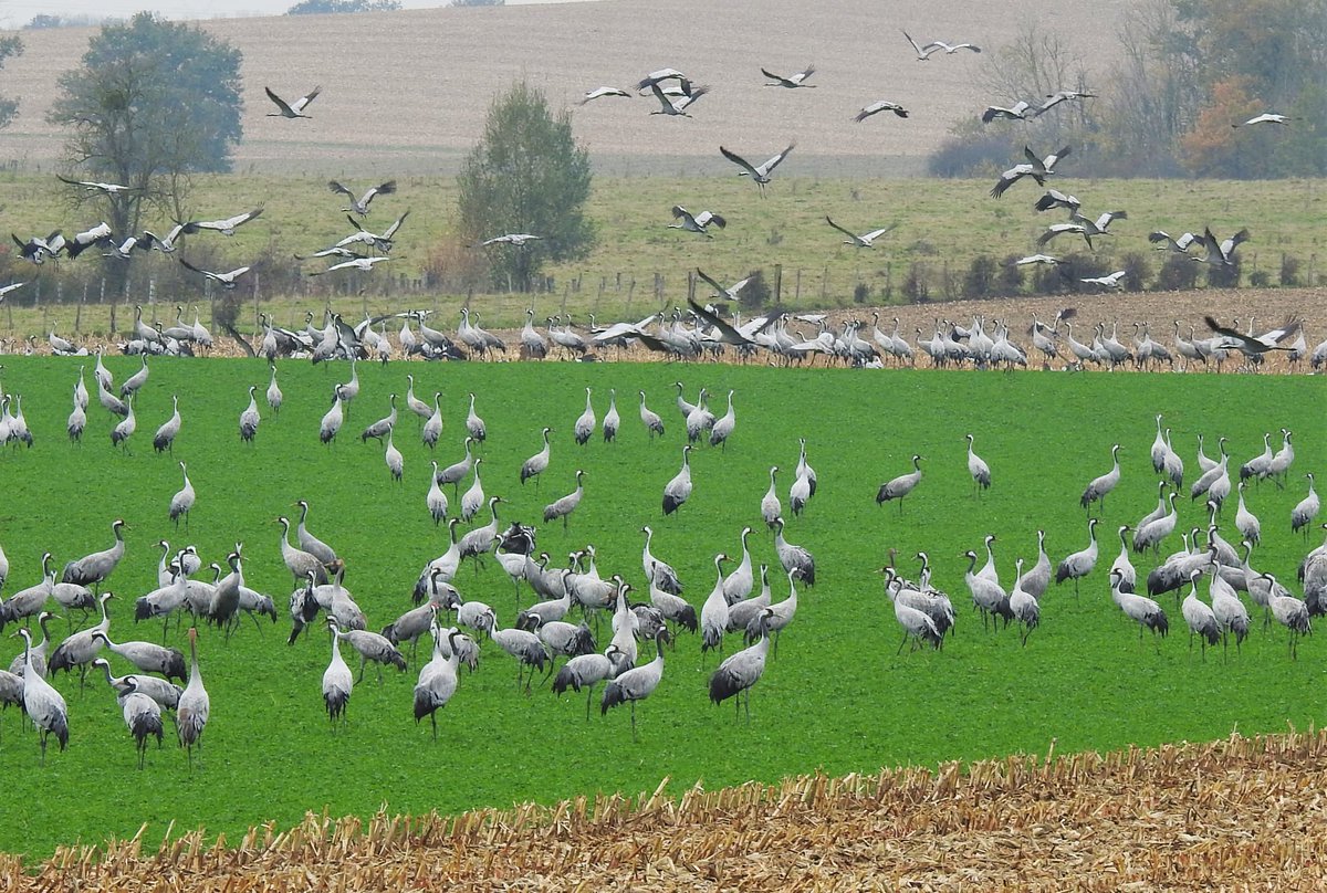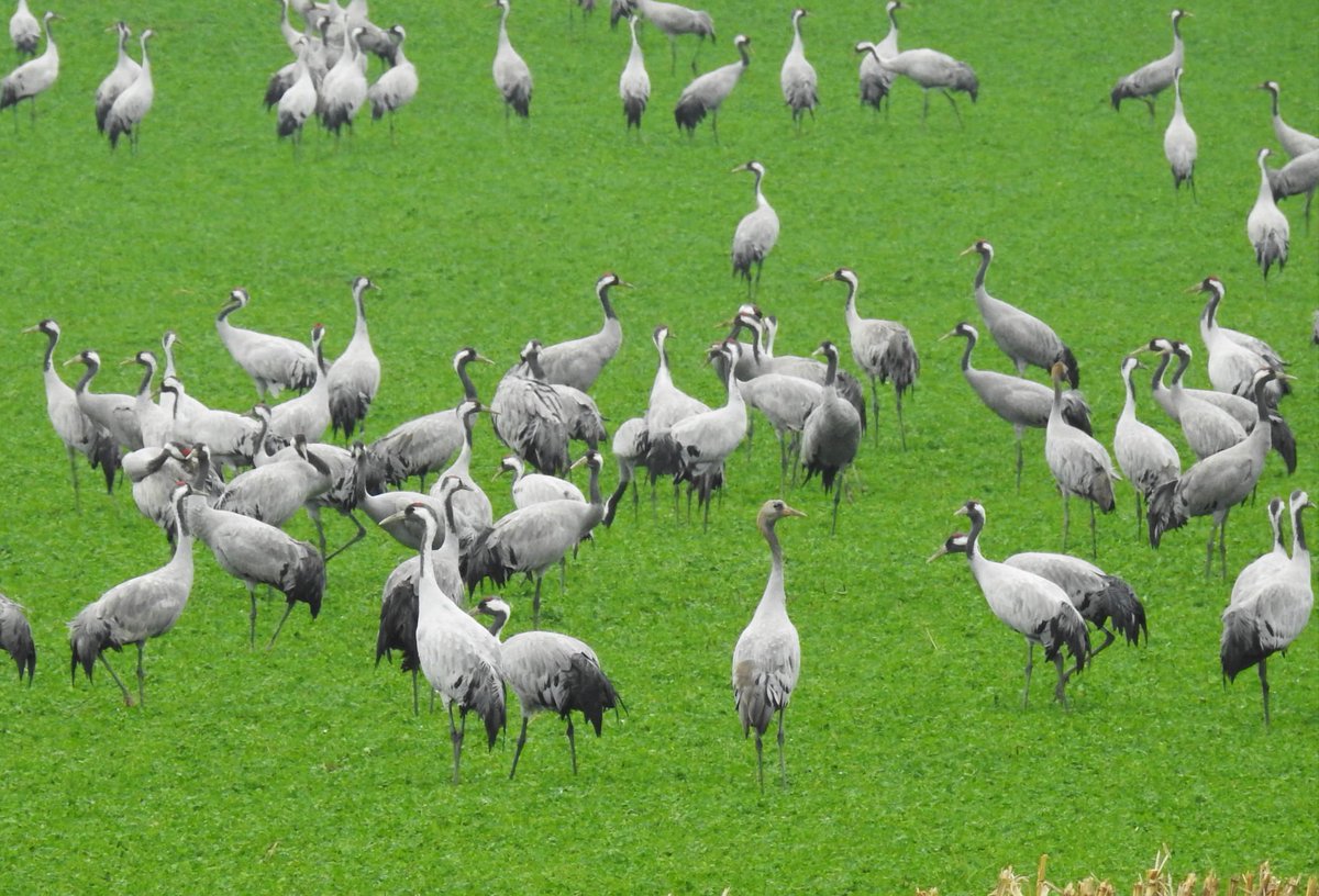 Durch die vielen Seen in der Gegend, sammeln sich dort die Kraniche. Ein schönes Spektakel