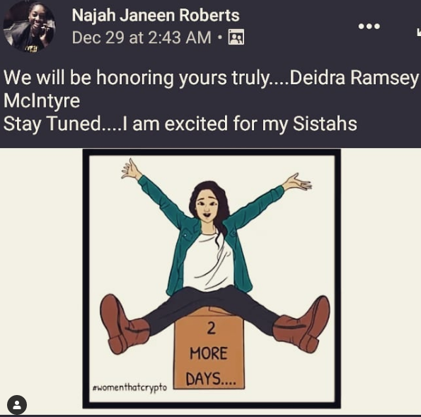 #WomenThatCrypto honor. Happy New Year & Happy Kwanzaa indeed.#Kuumba#blackpeopleandcryptocurrency#blacktech#blacktechpipeline#blacktechtwitter#satoshiisblack#satoshiisfemale#womenintech#crypto#Bitcoin