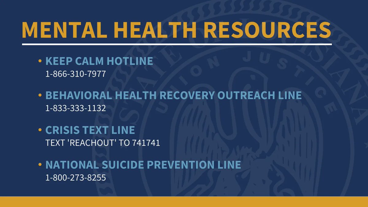 . Navigating consecutive natural disasters and two years of a pandemic can take a toll. It's just as important to take care of your mental health as it is to take care of your physical health. #lagov pic.twitter.com/TN72foavKn
