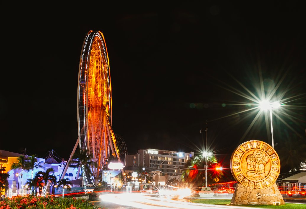 Canopy takes over Cancun! Bright orange colors painted the great Ferris Wheel for a couple of hours.